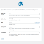 • Na następnej podstronie wypełniamy dane dostępowe bazy danych utworzonej w kroku 2) podajemy:  Nazwę bazy, Nazwę użytkownika, Hasło. Adres serwera bazy i prefix tabel pozostawiamy bez zmian, o ile nasz hosting nie ma niestandardowych ustawień serwera bazodanowego.